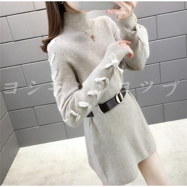 韓国 ファッション レディース 期間限定の激安セール ワンピース 長袖 膝丈 ハイネックニットワンピース 秋冬